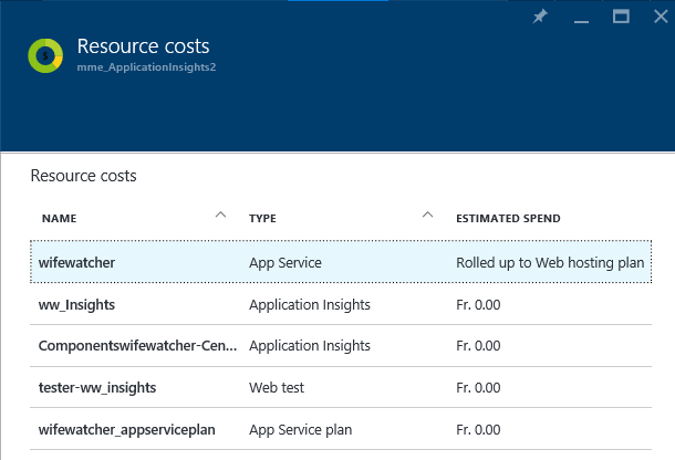 From the resource group blade we can take a look at the costs of all of the resources of our group: