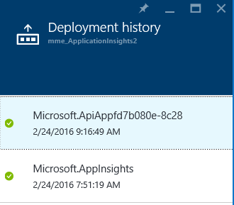 The same common-view-approach holds for other aspects of our resources. The portal shows us a deployment history, where we can see all the deployments that occurred for any of the resources in the group: